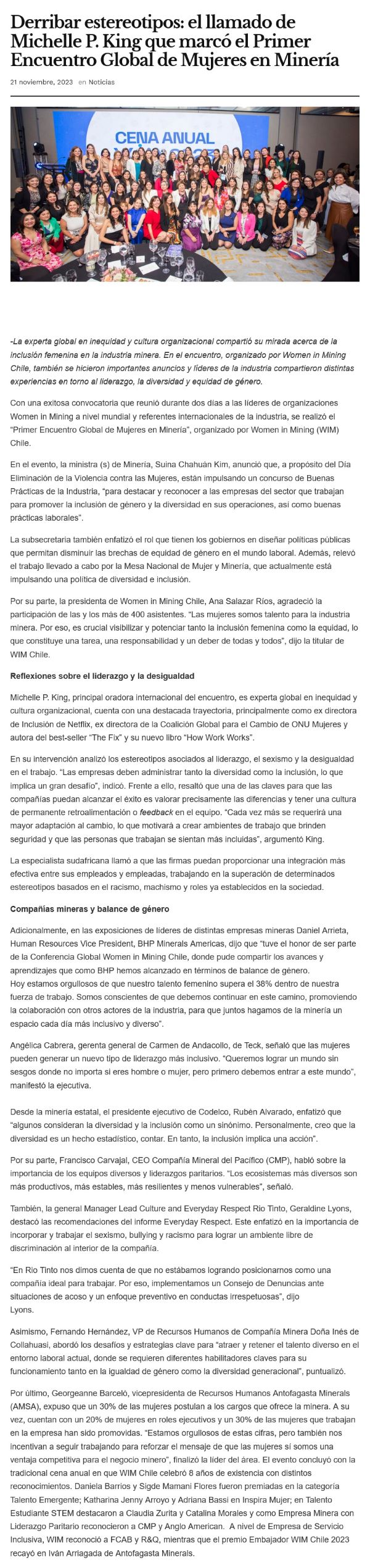Derribar estereotipos: el llamado de Michelle P. King que marcó el Primer Encuentro Global de Mujeres en Minería - (portalminero)