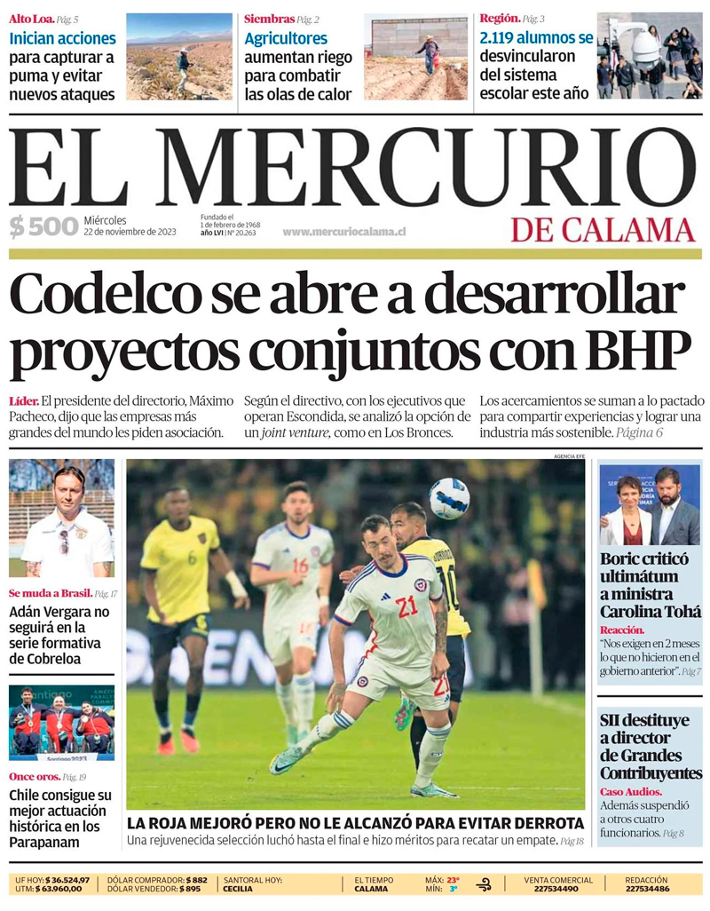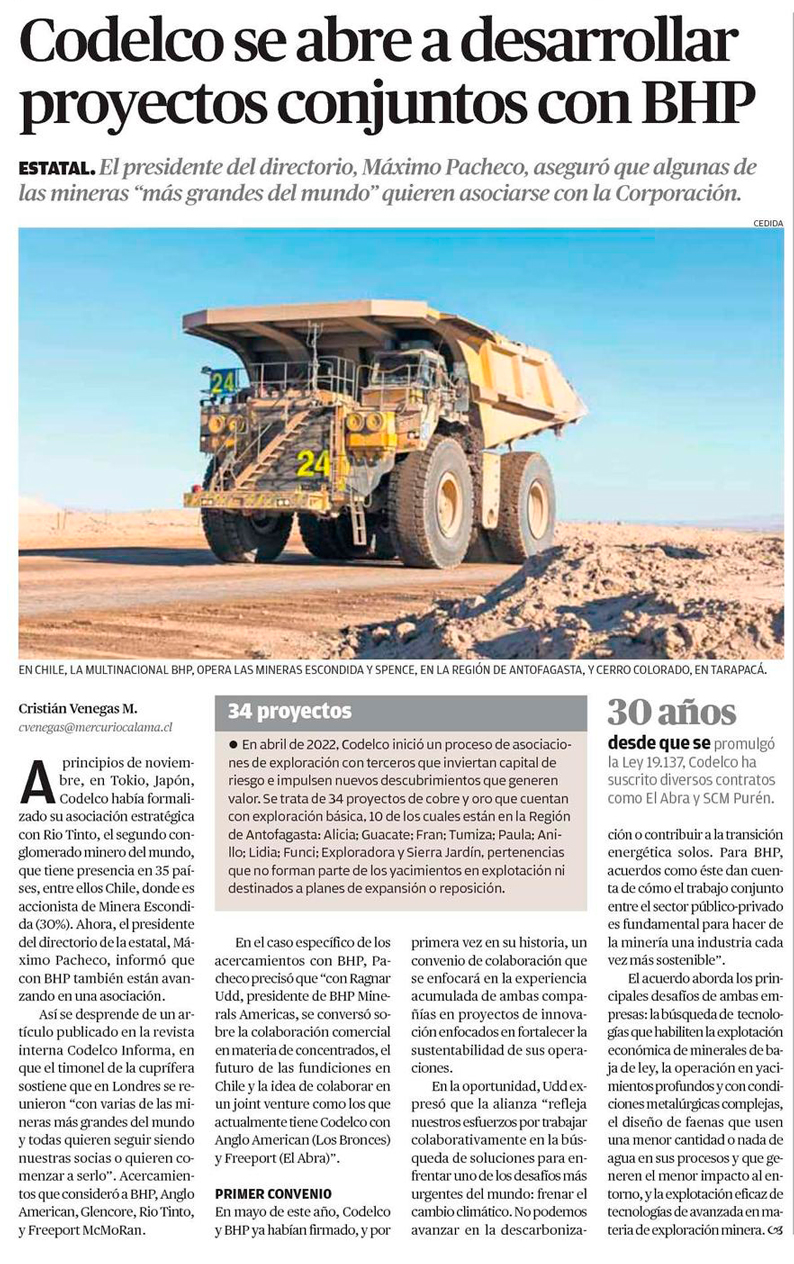 Codelco se abre a desarrollar proyectos conjuntos con BHP - (El Mercurio de Antofagasta)