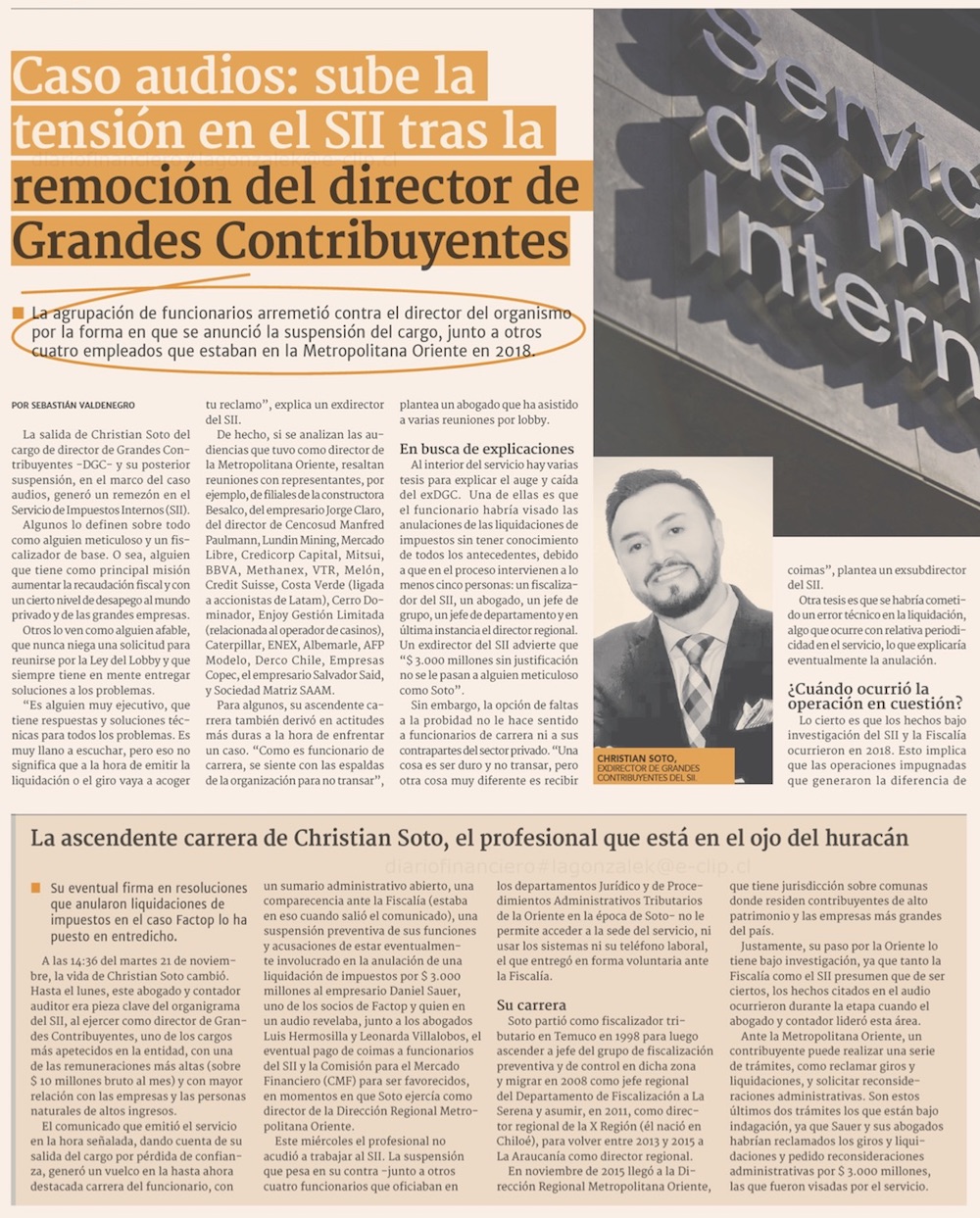 Caso Audio remece al SII y abre debate sobre avanzar hacia un gobierno colegiado - (El Mercurio de Santiago)