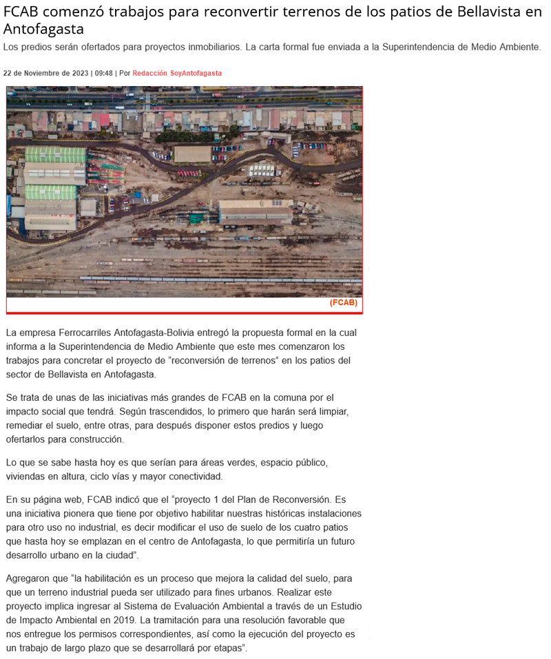 FCAB anuncia inicio de inédito proyecto que busca transformar el centro de la ciudad - (El Mercurio de Antofagasta)