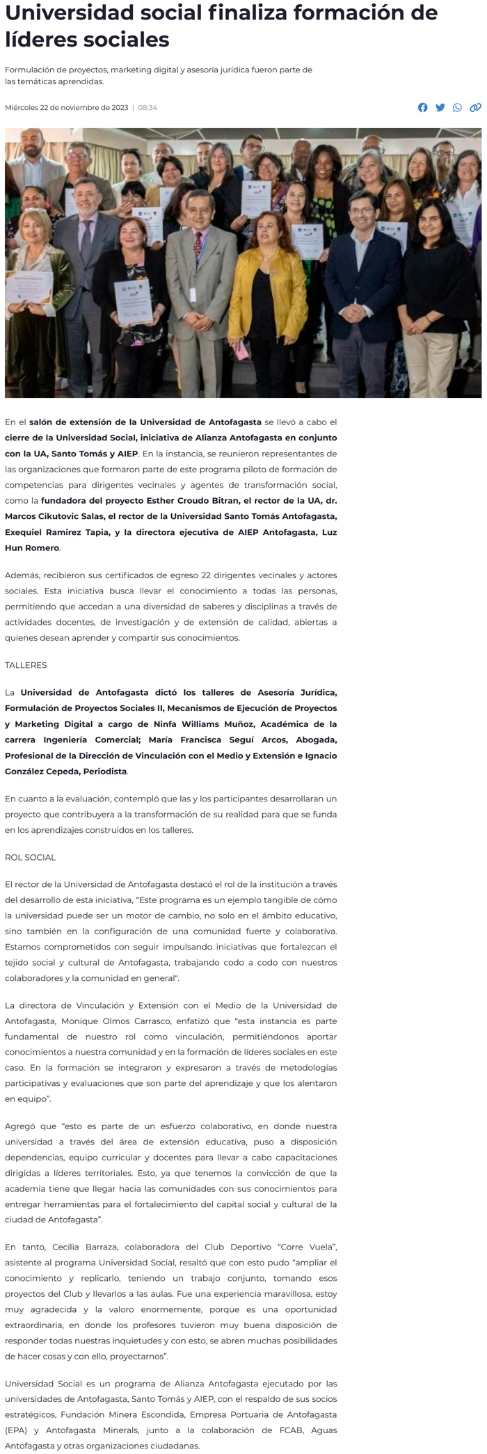 Universidad de Antofagasta finaliza formación de líderes sociales - (timeline)