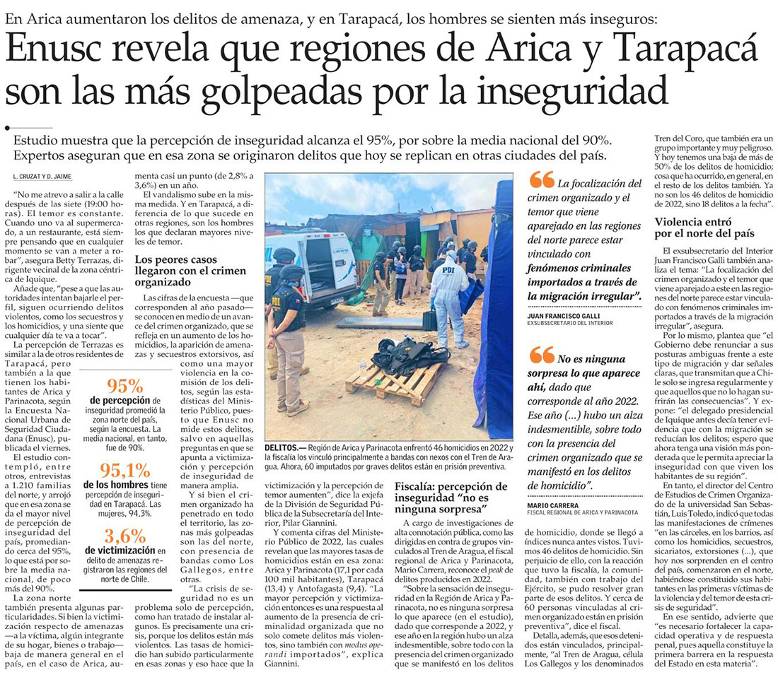 Enusc 2022: diputados de Arica y Tarapacá asocian niveles de victimización a la "migración clandestina" y exigen nuevas acciones - (La Tercera)