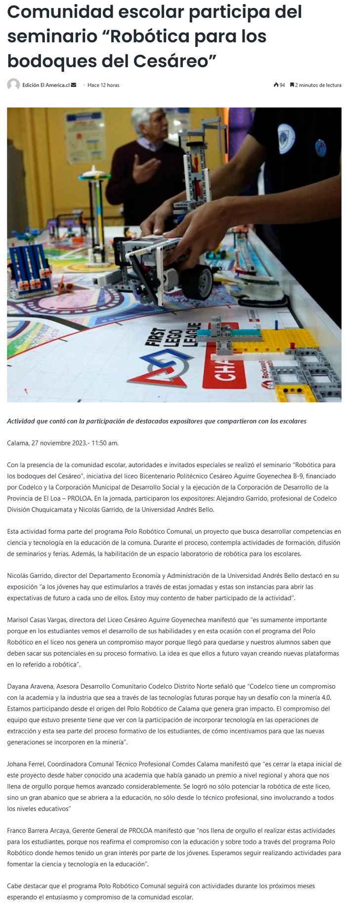 Comunidad escolar participa de seminario sobre robótica - (Estrella de Antofagasta)
