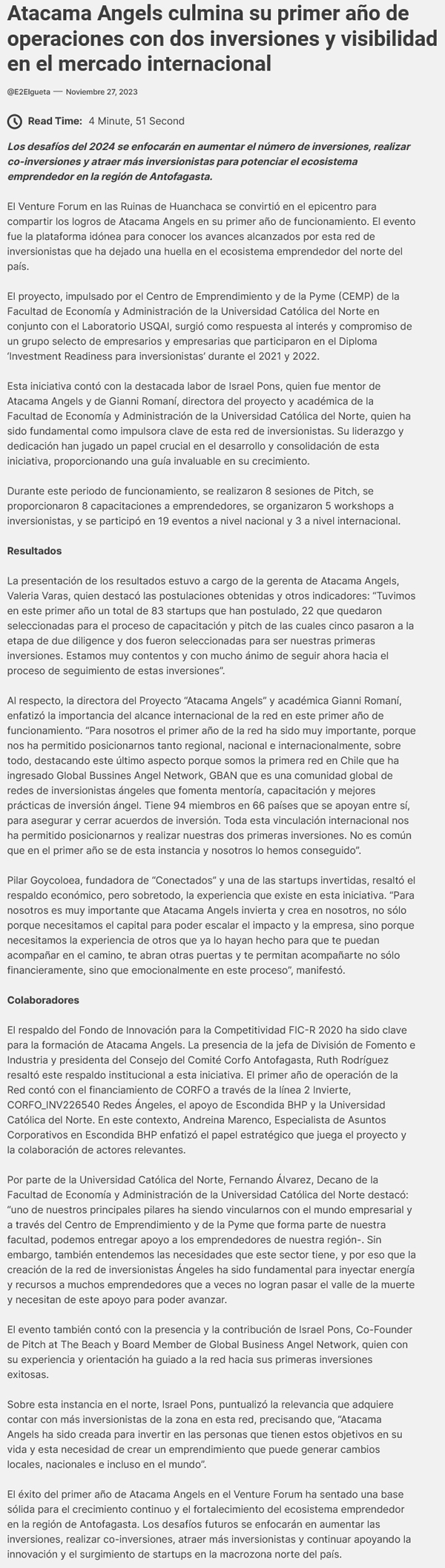 Atacama Angels culmina primer año de operaciones con 2 inversiones - (radioua.cl)