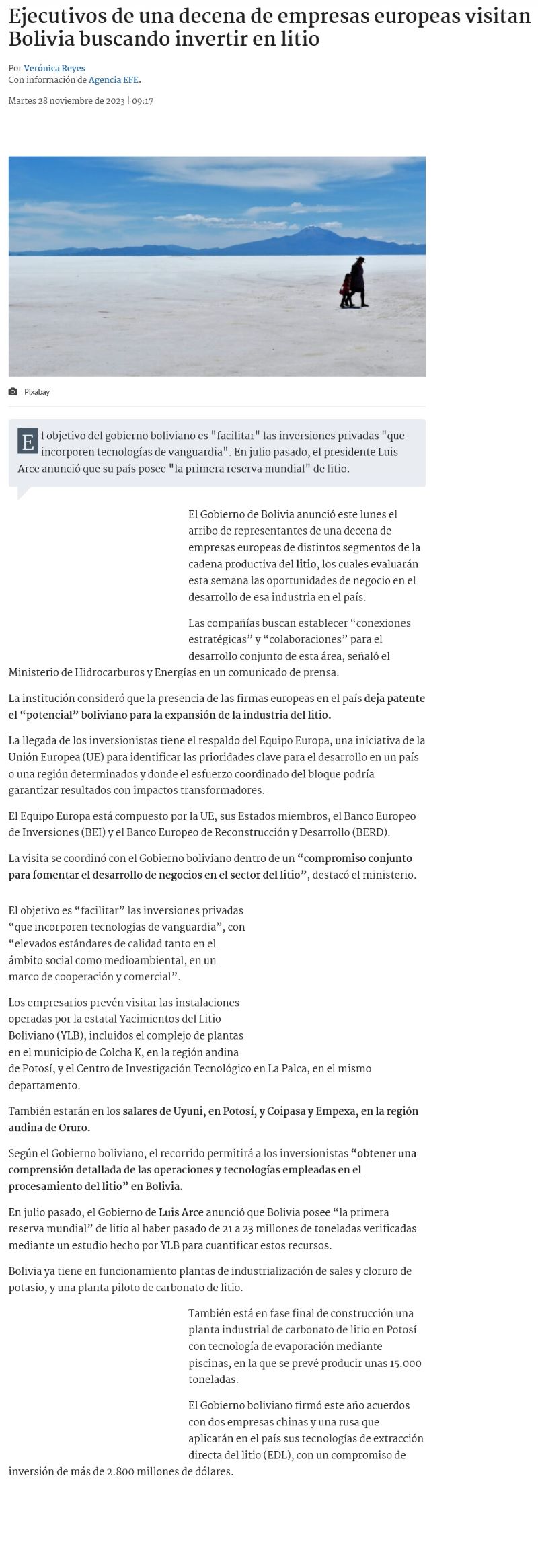 Inversionistas europeos buscan oportunidades en Bolivia para desarrollo del litio - (america-retail.com)
