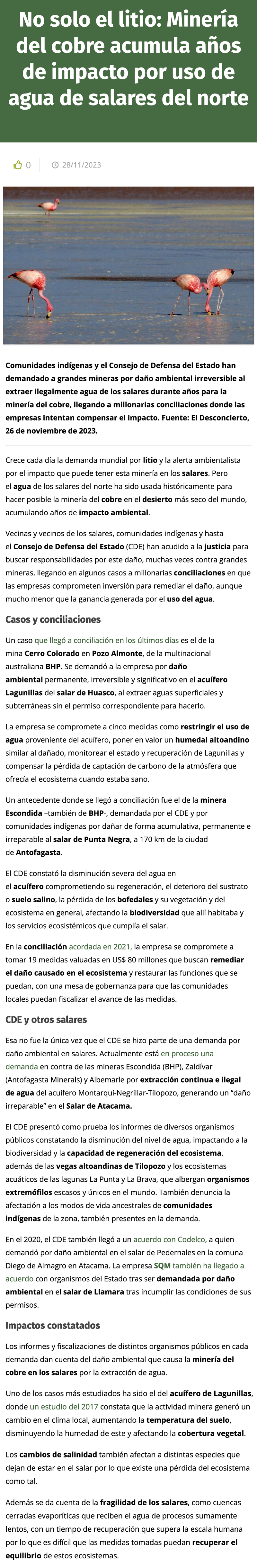 No solo el litio: Minería del cobre acumula años de impacto por uso de agua de salares del norte - (eldesconcierto)
