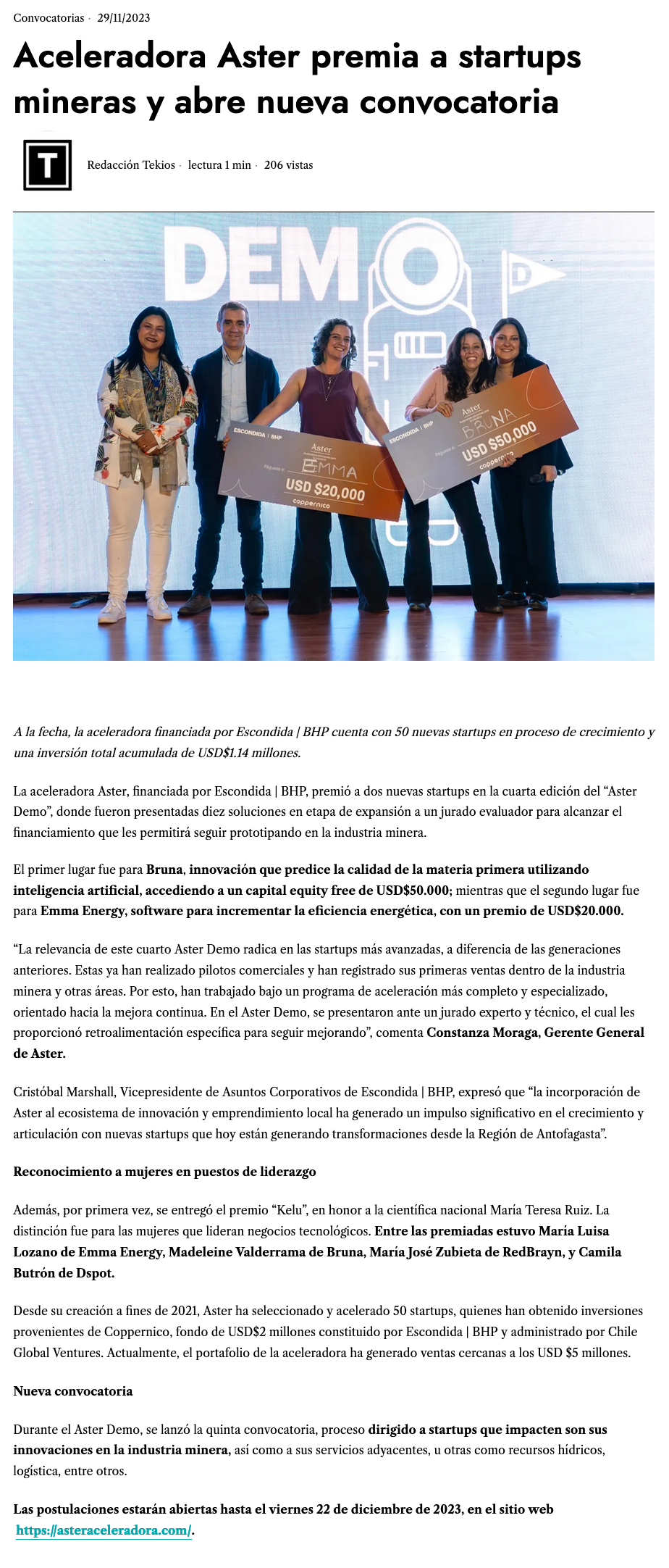 Aceleradora Aster premia a startups mineras y abre nueva convocatoria para soluciones de base tecnológica - (portalinnova.cl)