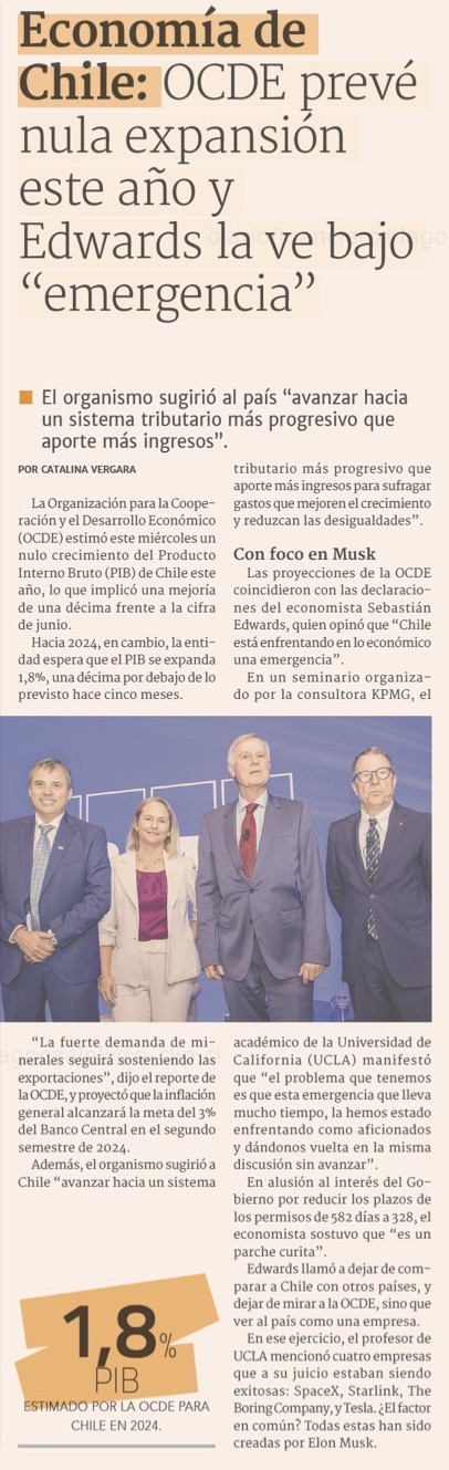 Ocde mejora sus estimaciones para el PIB de Chile en 2023, pero reduce expectativas para 2024 - (Pulso)