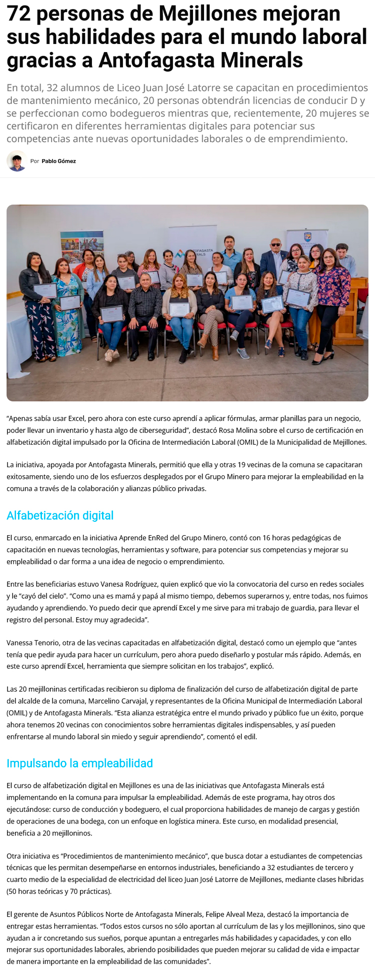 Mejilloninos mejoran sus habilidades para el mundo laboral - (El Mercurio de Antofagasta)