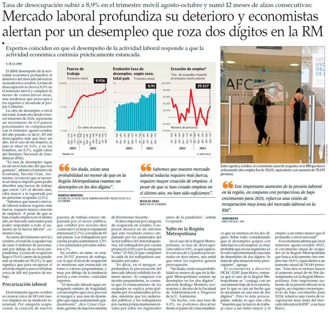 Desocupación se estaciona en 8,9% y casi la mitad de los empleos creados en el último año son trabajadores públicos - (Pulso)