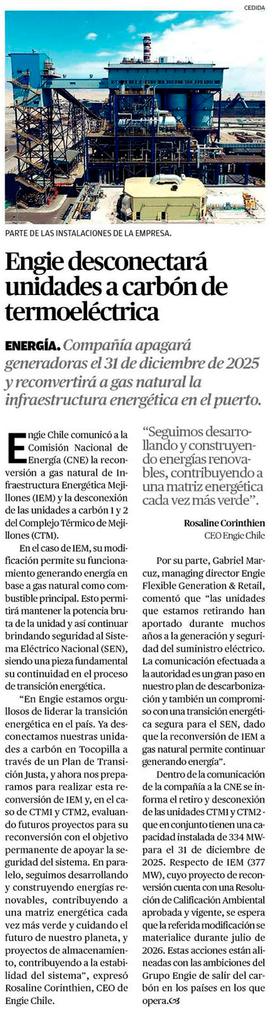 Engie anunció desconexión de unidades 1 y 2 a carbón de termoeléctrica en Mejillones - (soyantofagasta)