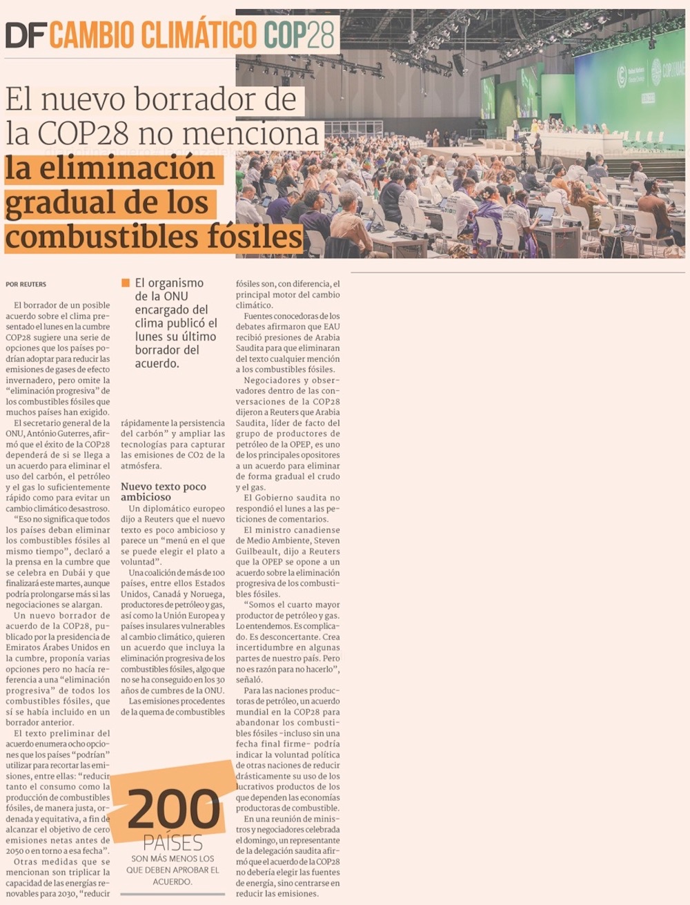 La COP28 llega a un “momento de crisis” tras borrador de acuerdo calificado de “totalmente inaceptable” - (El Mercurio de Santiago)