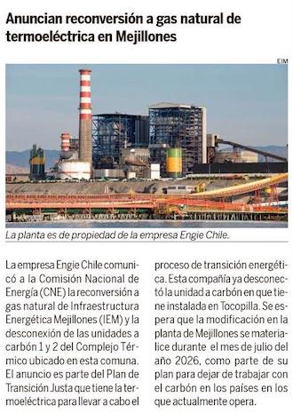 Engie desconectará unidades de carbón de termoeléctrica - (El Mercurio de Antofagasta)