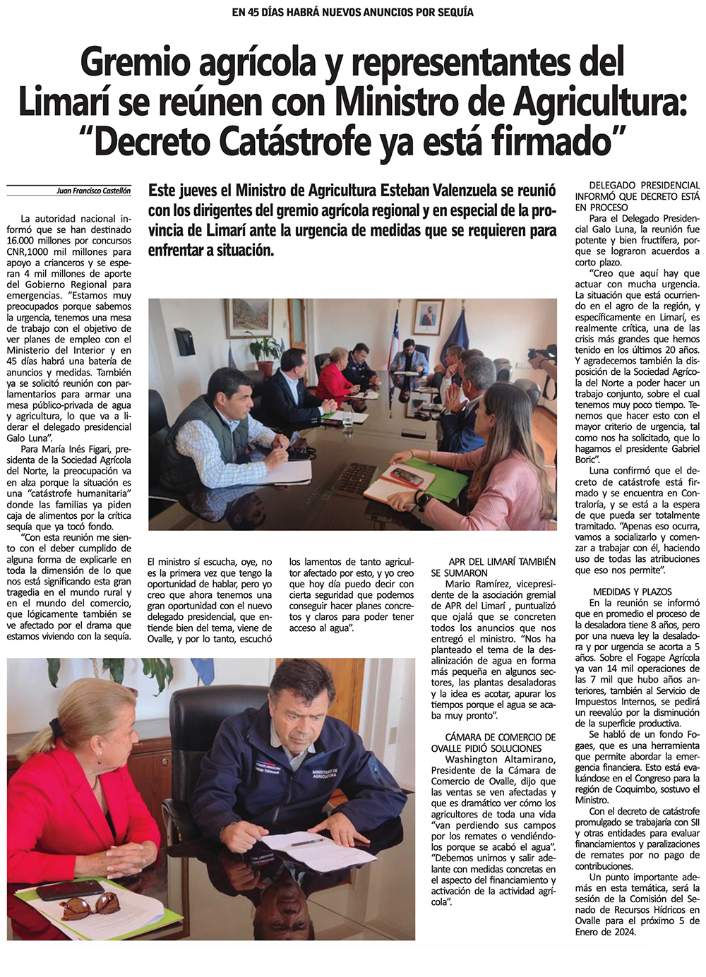 “Es inminente la declaración de zona de catástrofe por sequía” - (La Región)