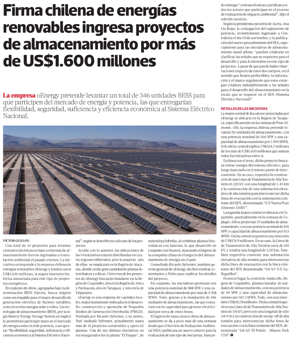 Anuncian 14 proyectos de almacenamiento - (El Mercurio de Santiago)