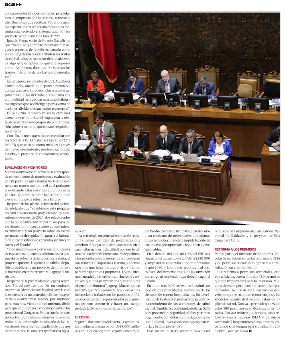 Pacto fiscal: borrador final compromete nuevas medidas de probidad para funcionarios tributarios - (Diario Financiero)