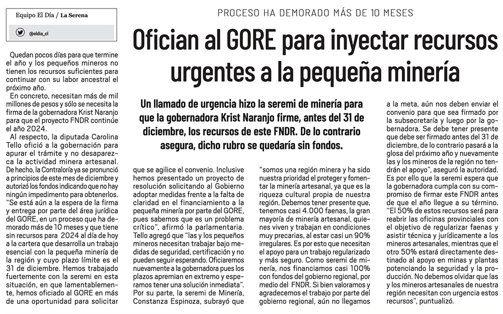 Peligran recursos para la pequeña minería en 2024 - (La Región)