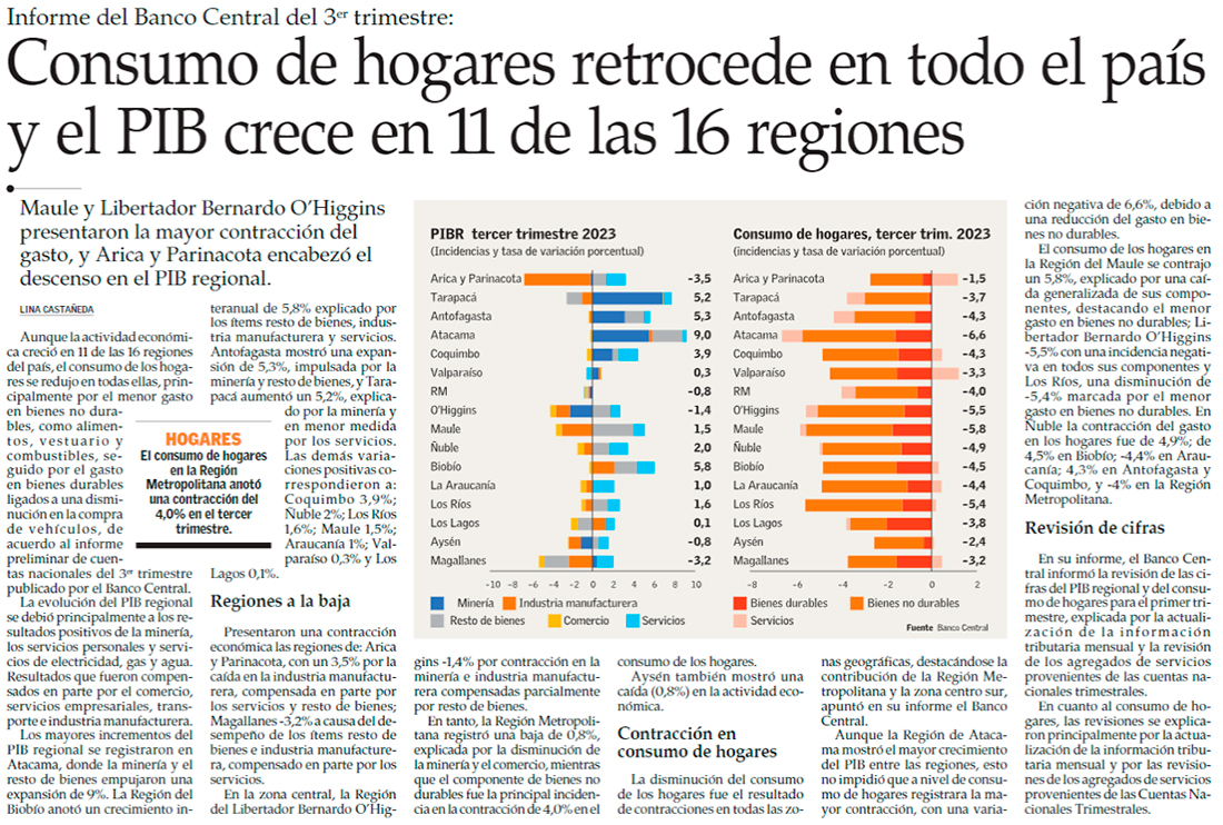 PIB de regiones: Atacama lideró el alza en tercer trimestre y zonas extremas acusaron mayores caídas - (Diario Financiero)