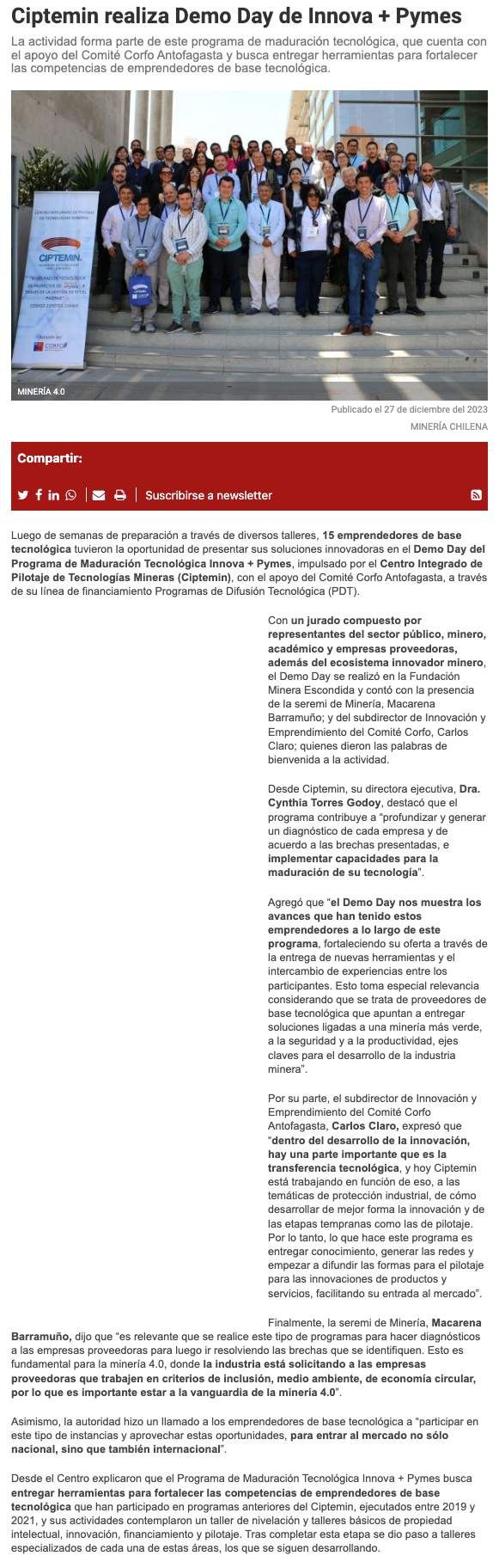 CIPTEMIN realiza Demo Day de Innova + Pymes - (mineriayfuturo.cl)