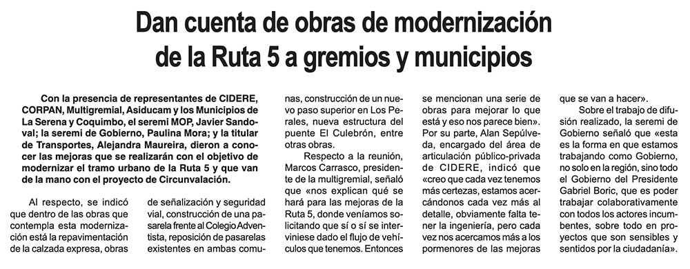 Municipalidades exigen más información sobre mejoras a la ruta 5 y circunvalación - (El Día)
