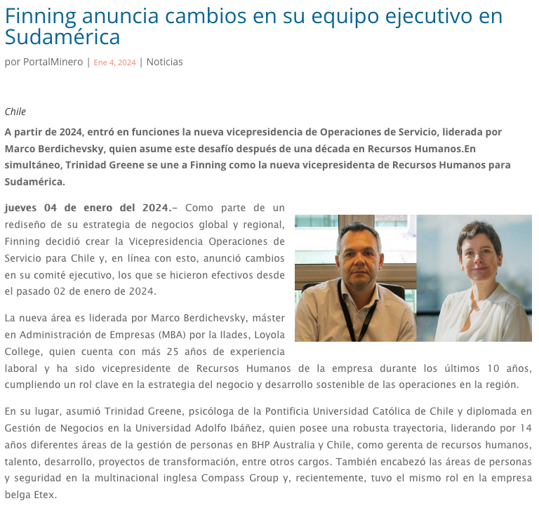 Finning anuncia cambios en su equipo ejecutivo en Sudamérica. - (Nostálgica Online)