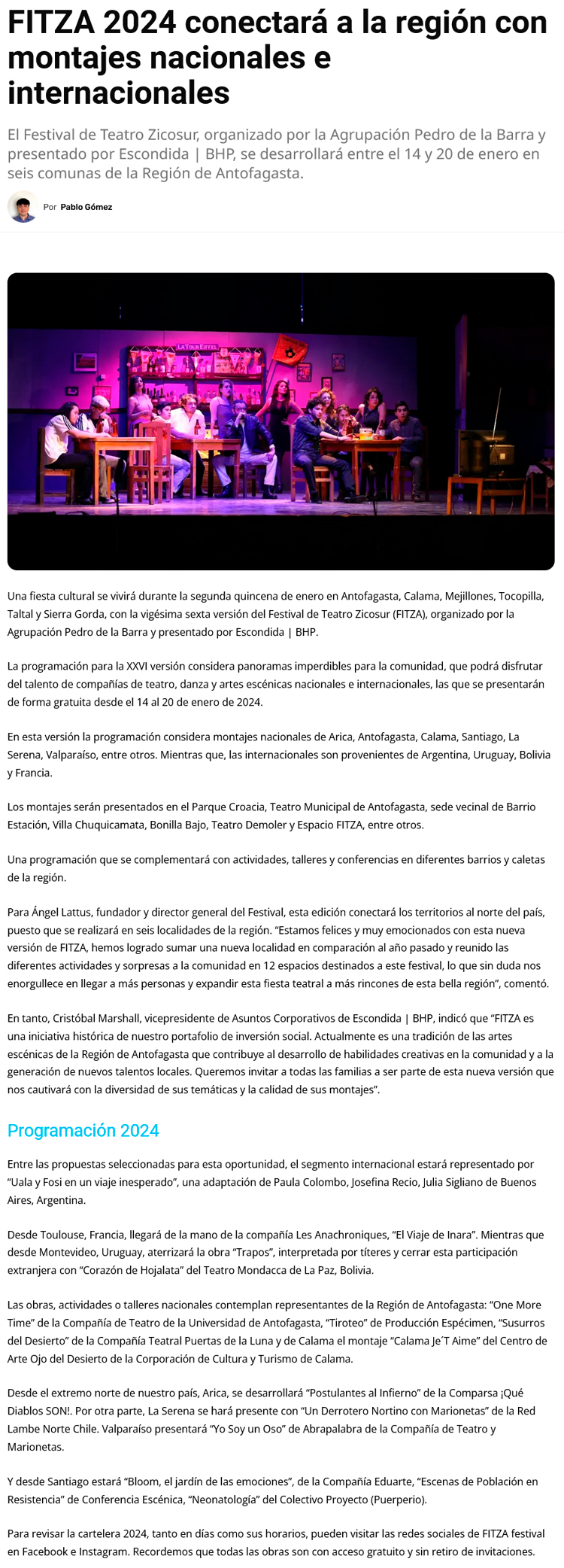 FITZA 2024 conectará a la región con montajes nacionales e internacionales - (antofagastanoticias)