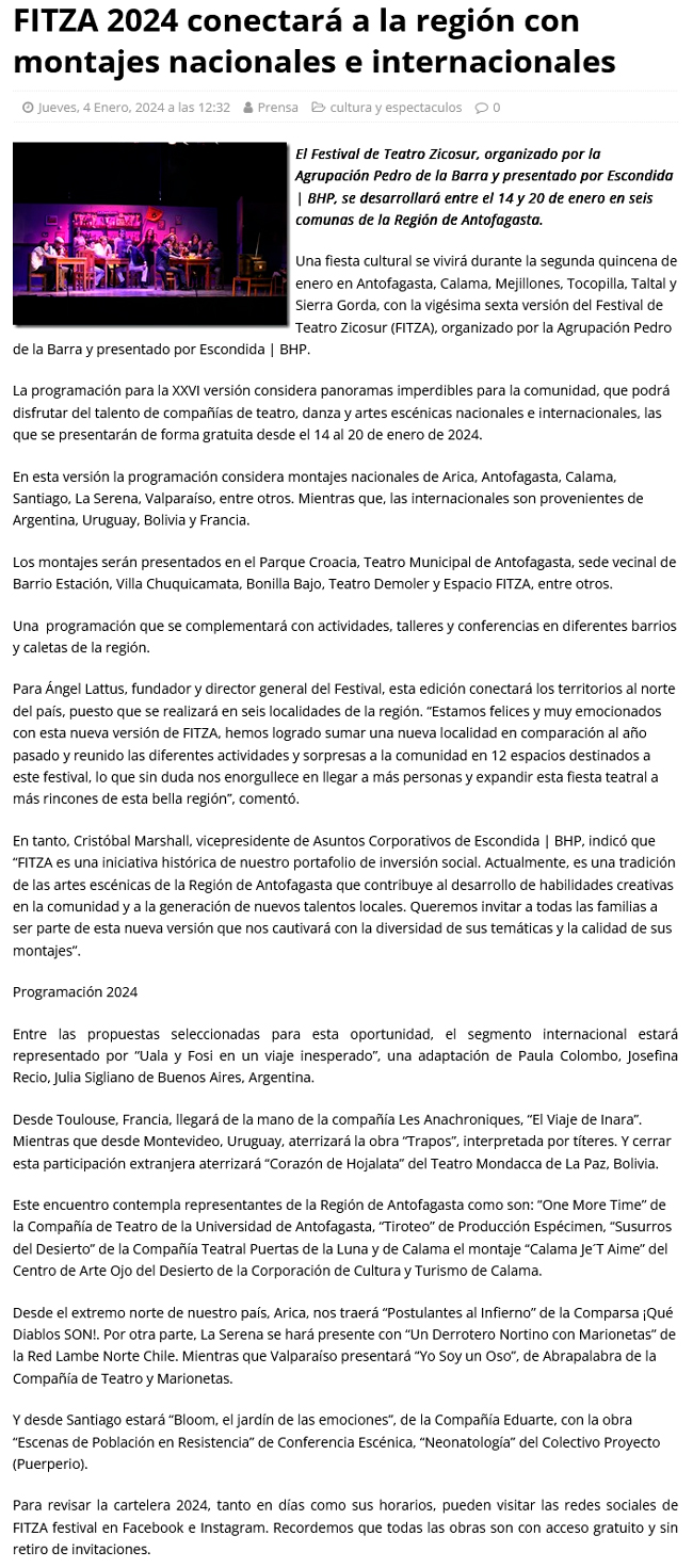 FITZA 2024 conectará a la región con montajes nacionales e internacionales - (antofagastanoticias)