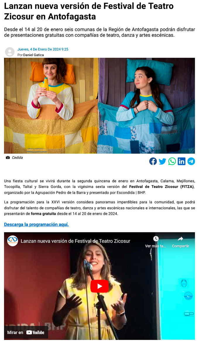 FITZA 2024 conectará a la región con montajes nacionales e internacionales - (regionesnoticias.cl)