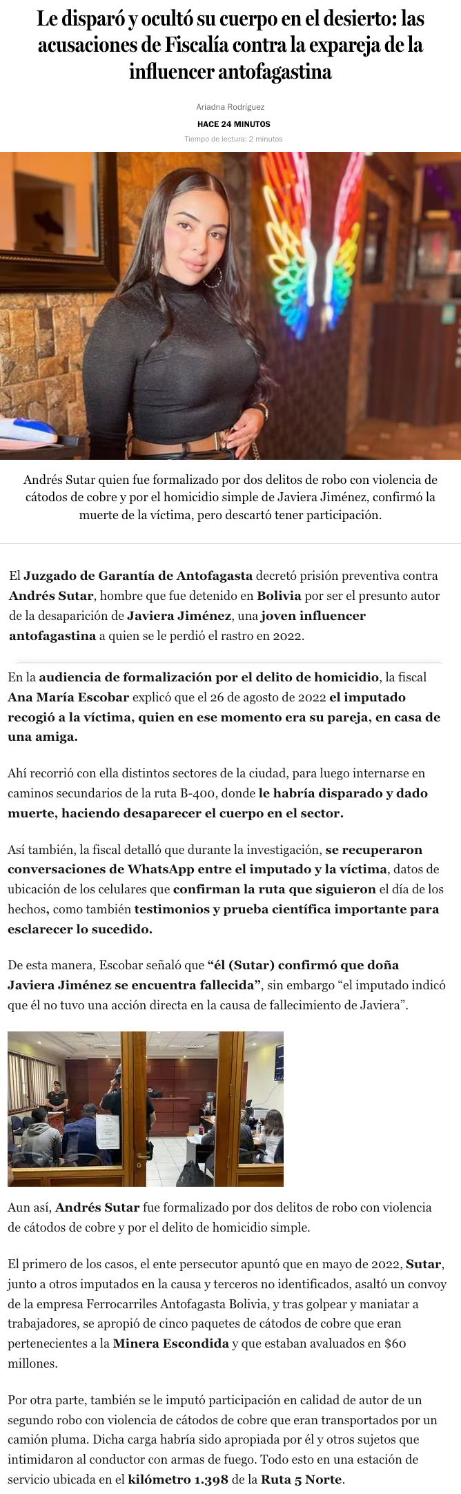 Juzgado de Garantía de Antofagasta decretó prisión preventiva para Andrés Sutar por robo de cobre y homicidio - (radiopaulina.cl)