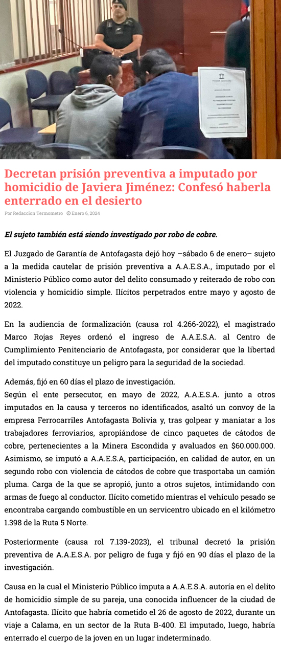 Juzgado de Garantía de Antofagasta decretó prisión preventiva para Andrés Sutar por robo de cobre y homicidio - (radiopaulina.cl)