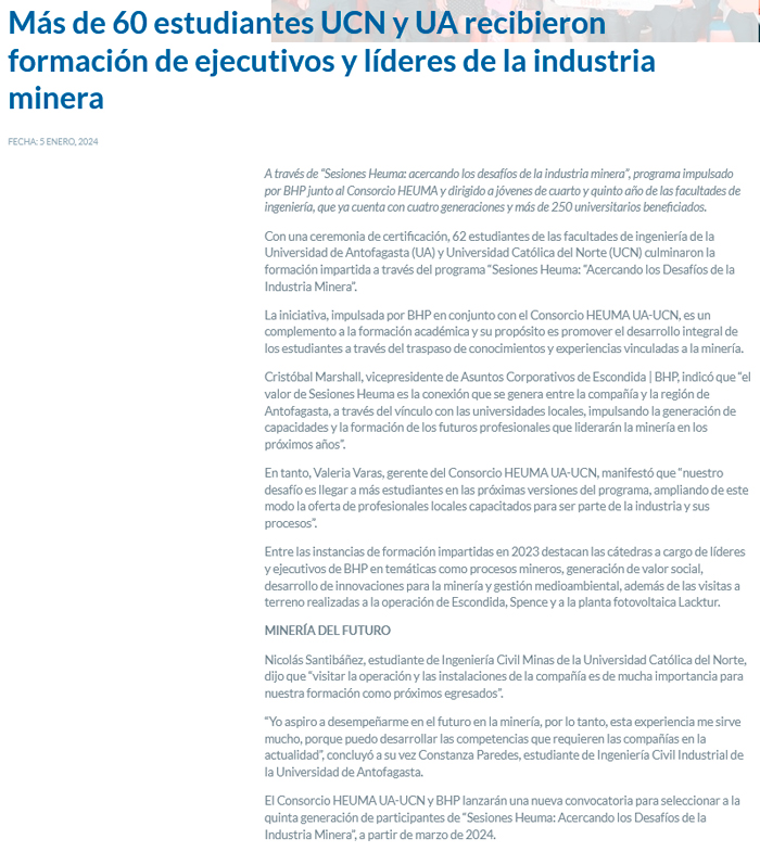 Exponor 2024: Spence | BHP destaca oportunidad de crear vínculos con nuevos actores de la industria - (mch.cl)