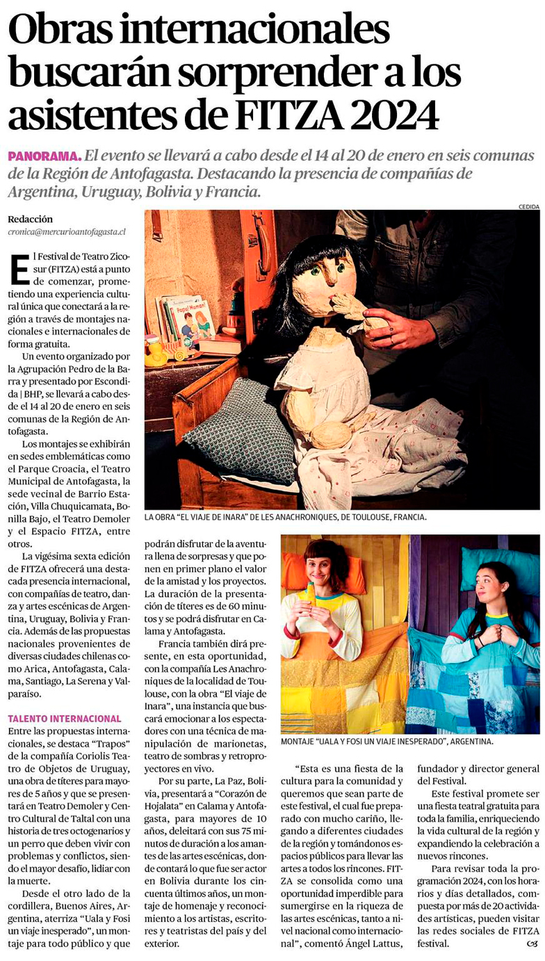 Obras internacionales buscarán sorprender y emocionar a los asistentes de FITZA 2024 - (regionesnoticias.cl)
