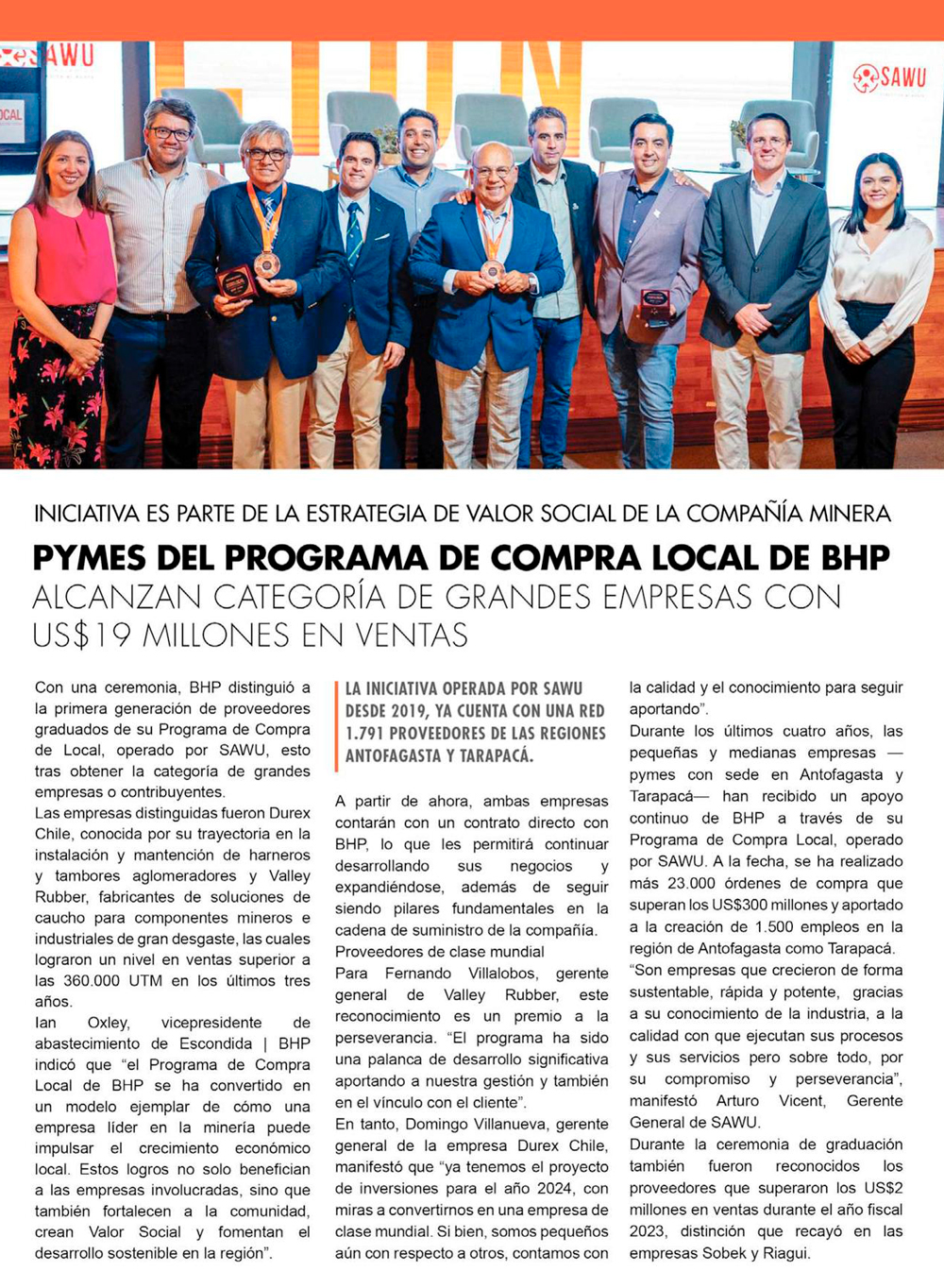 Pymes del programa de compra local de BHP alcanzan categoría de grandes empresas con US$19 millones en ventas - (soyantofagasta)
