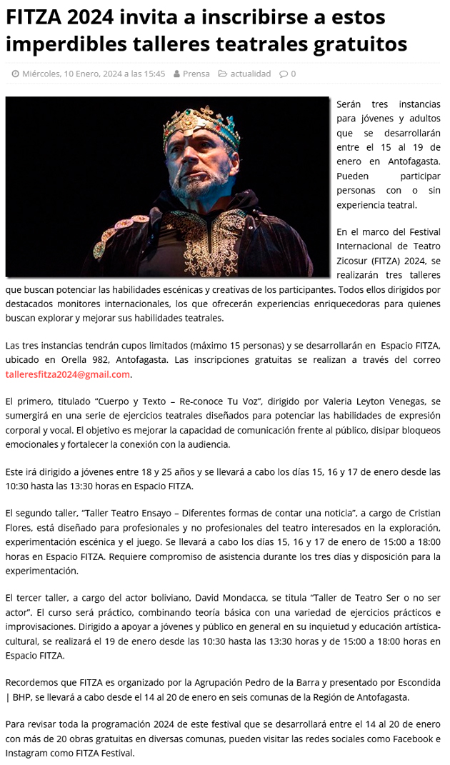 FITZA 2024 invita a inscribirse a estos imperdibles talleres teatrales gratuitos - (antofagastanoticias)