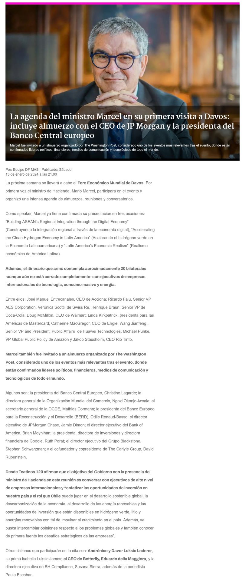Marcel asistirá por primera vez al Foro de Davos - (cooperativa online)
