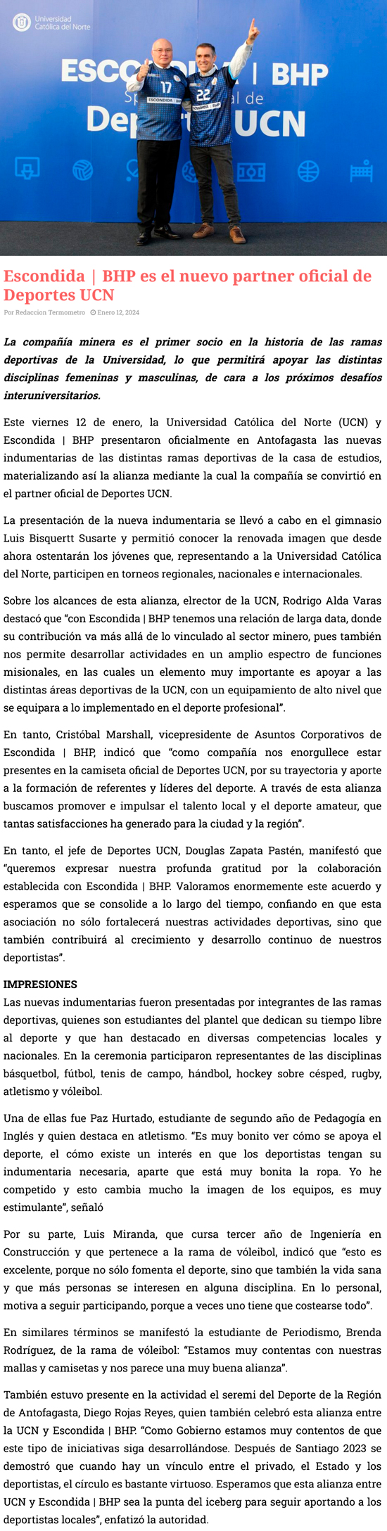 UCN presentó a Escondida | BHP como nuevo partner deportivo - (noticias.ucn.cl)