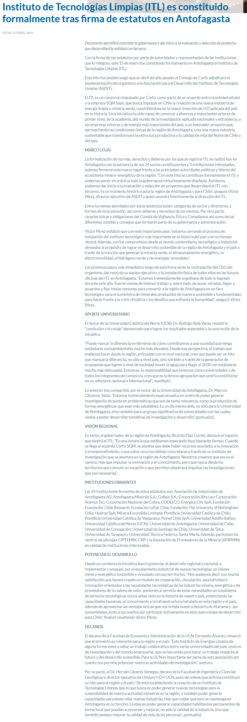 Instituto de Tecnologías Limpias se constituye formalmente tras la firma de sus estatutos - (norteyenegia.cl)