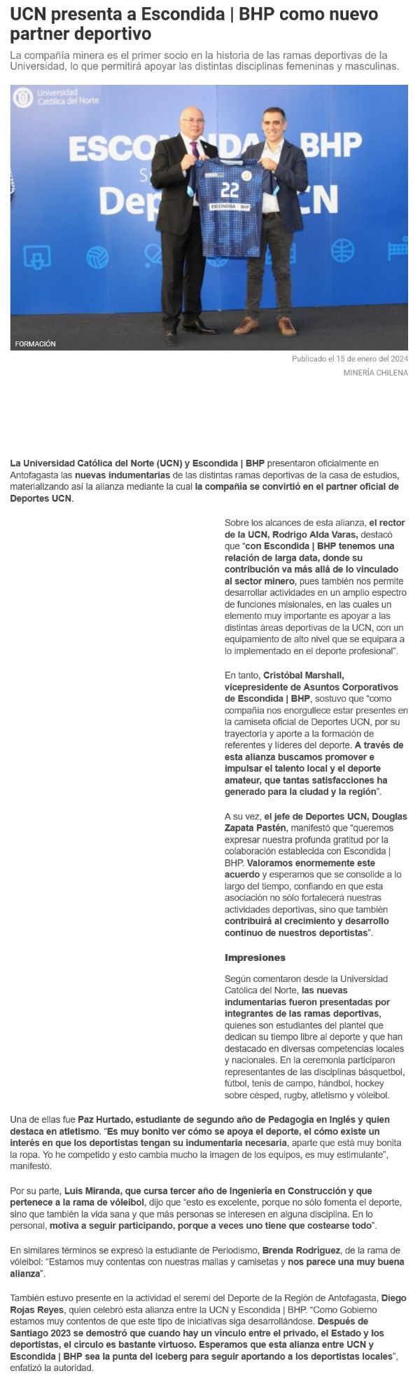 UCN presentó a Escondida | BHP como nuevo partner deportivo - (reporteminero)