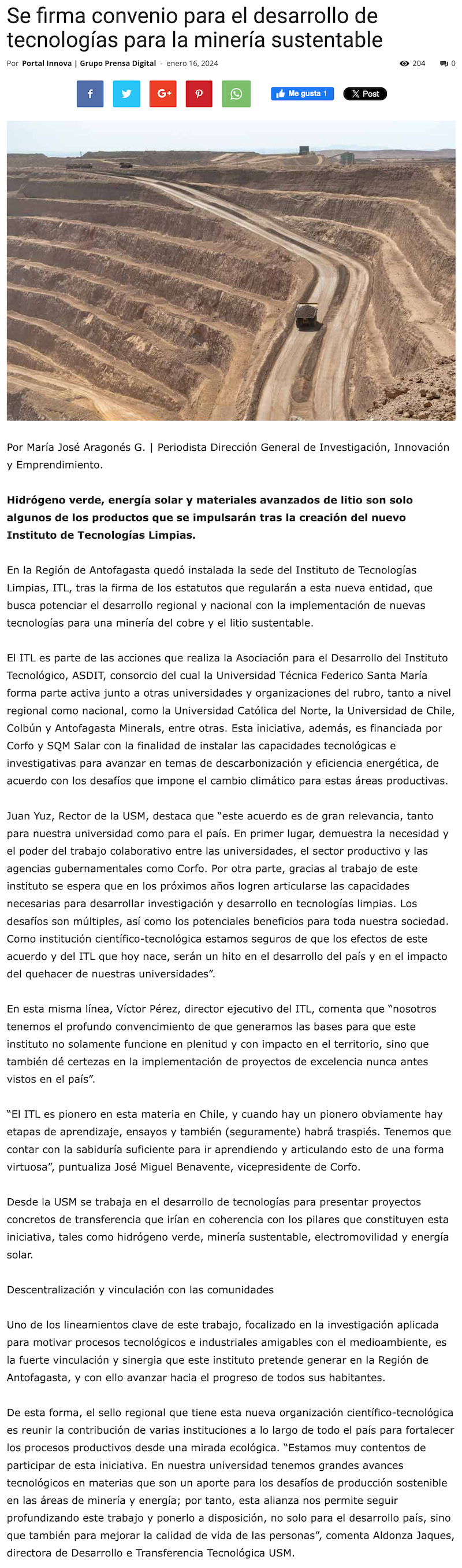 Hito para el país y la Región de Antofagasta: Se constituye formalmente el Instituto de Tecnologías Limpias ITL - (mineriayfuturo.cl)