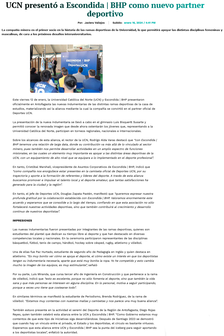 UCN presentó a Escondida | BHP como nuevo partner deportivo - (calamaenlinea.cl)