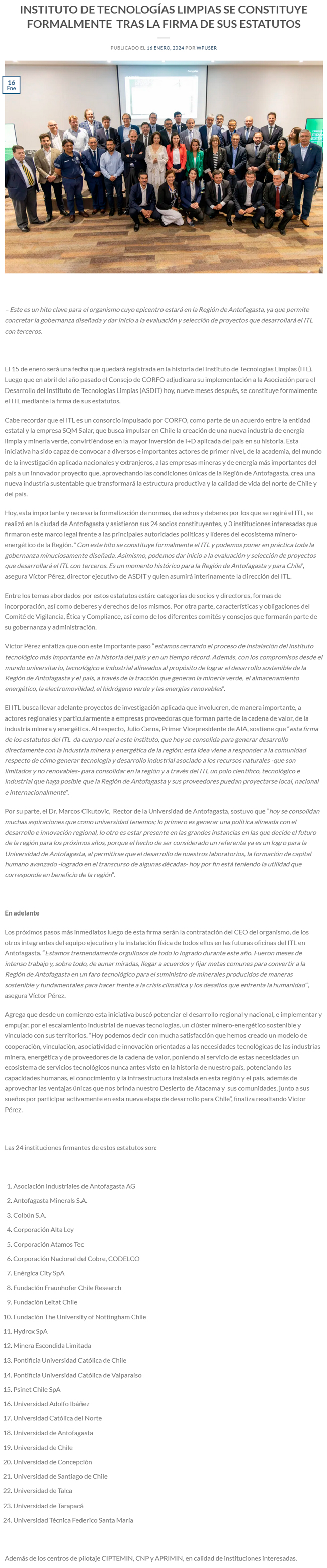 Hito para el país y la Región de Antofagasta: Se constituye formalmente el Instituto de Tecnologías Limpias ITL - (mineriayfuturo.cl)