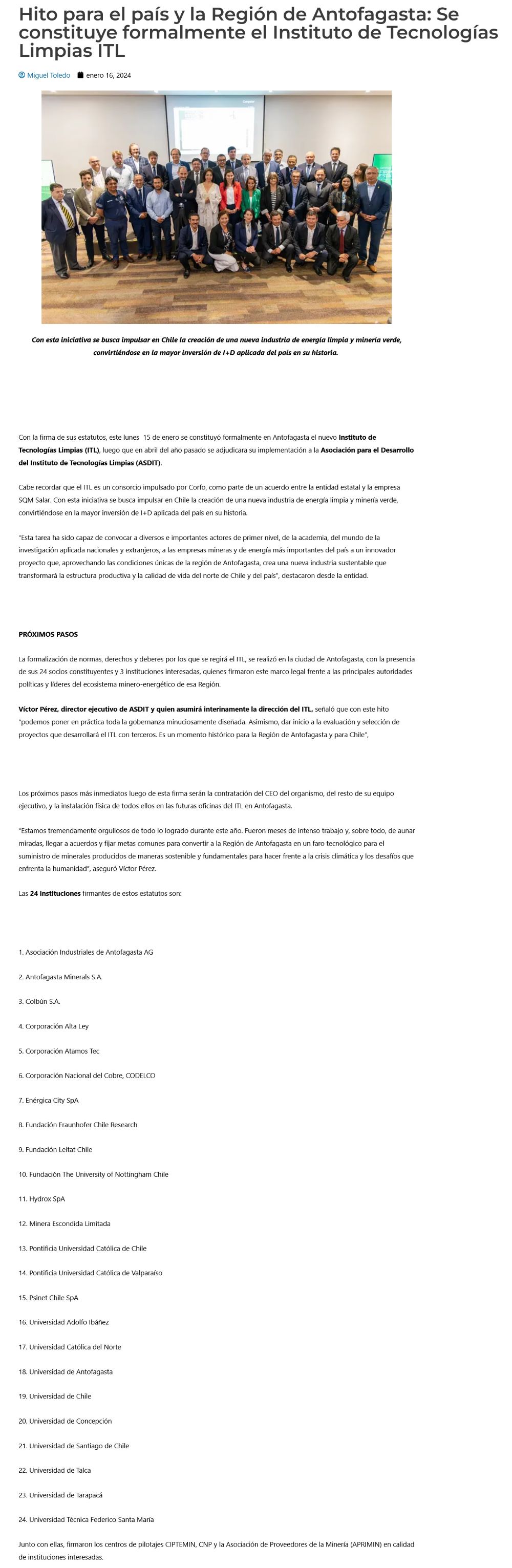 Instituto de Tecnologías Limpias se constituye formalmente tras la firma de sus estatutos - (nuevaminería online)