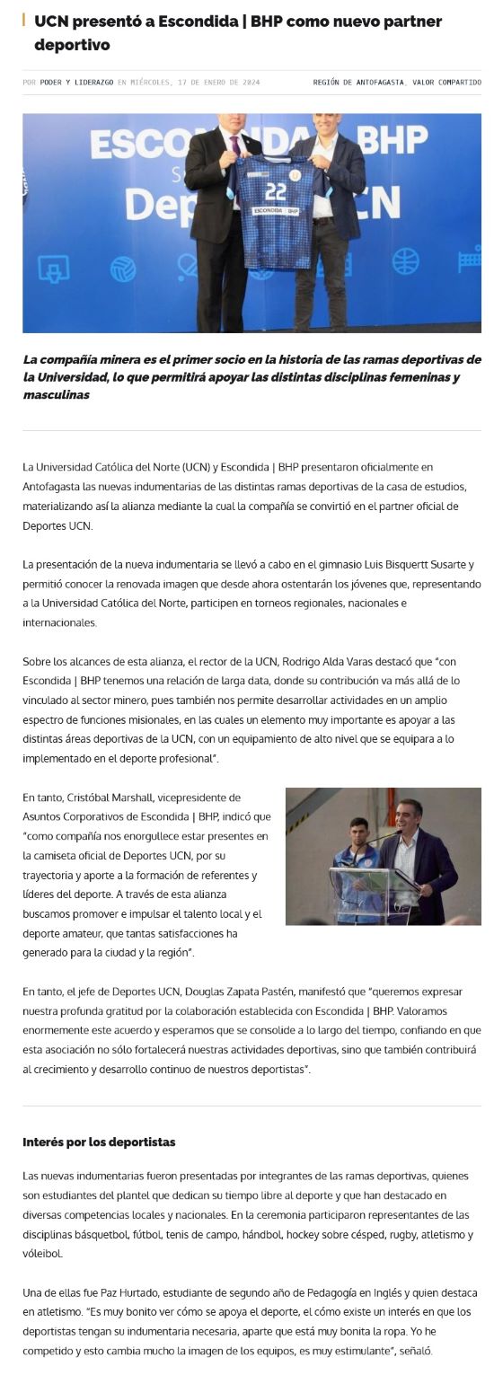 UCN presentó a Escondida | BHP como nuevo partner deportivo - (madero.cl)