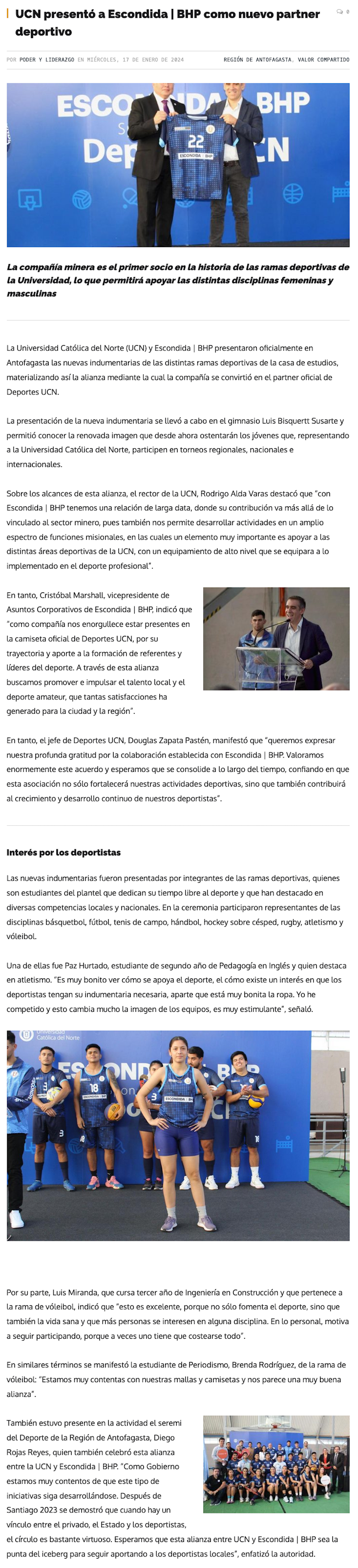 UCN presentó a Escondida | BHP como nuevo partner deportivo - (soyantofagasta)