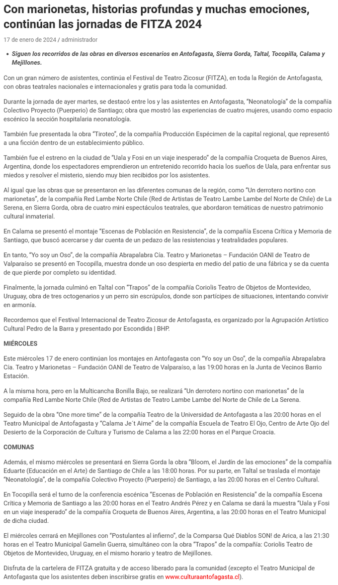 Con marionetas, historias profundas y muchas emociones, continúan las jornadas de FITZA 2024 - (cpcomunicaciones.cl)