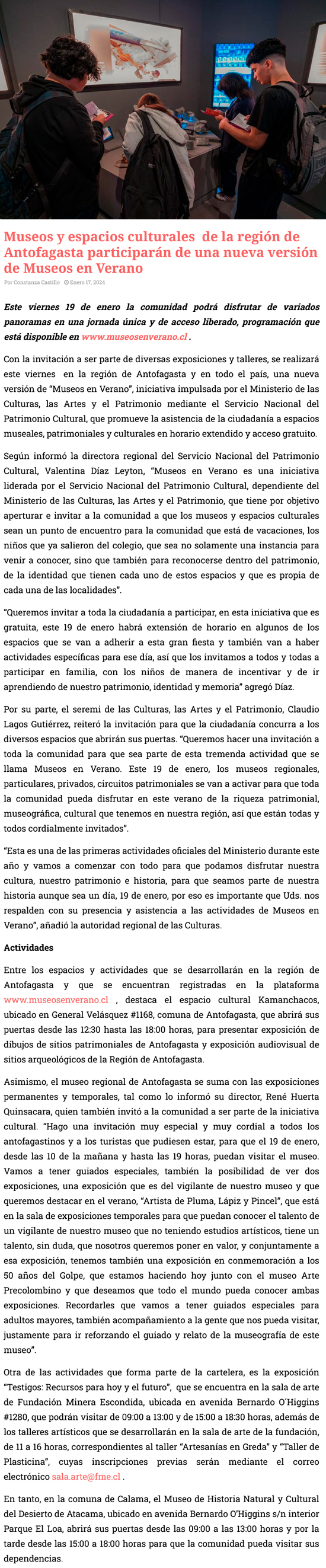 Museos y espacios culturales de la región de Antofagasta participarán de una nueva versión de Museos en verano - (desiertofm.cl)