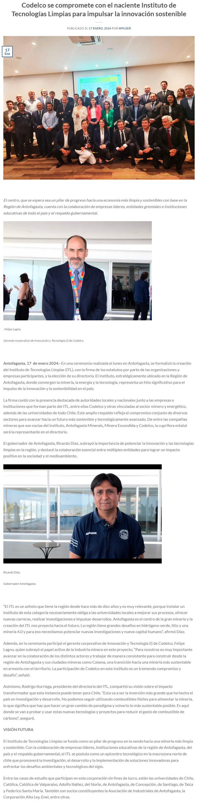 Codelco se compromete con el naciente Instituto de Tecnologías Limpias para impulsar la innovación sostenible - (Adprensa.cl)