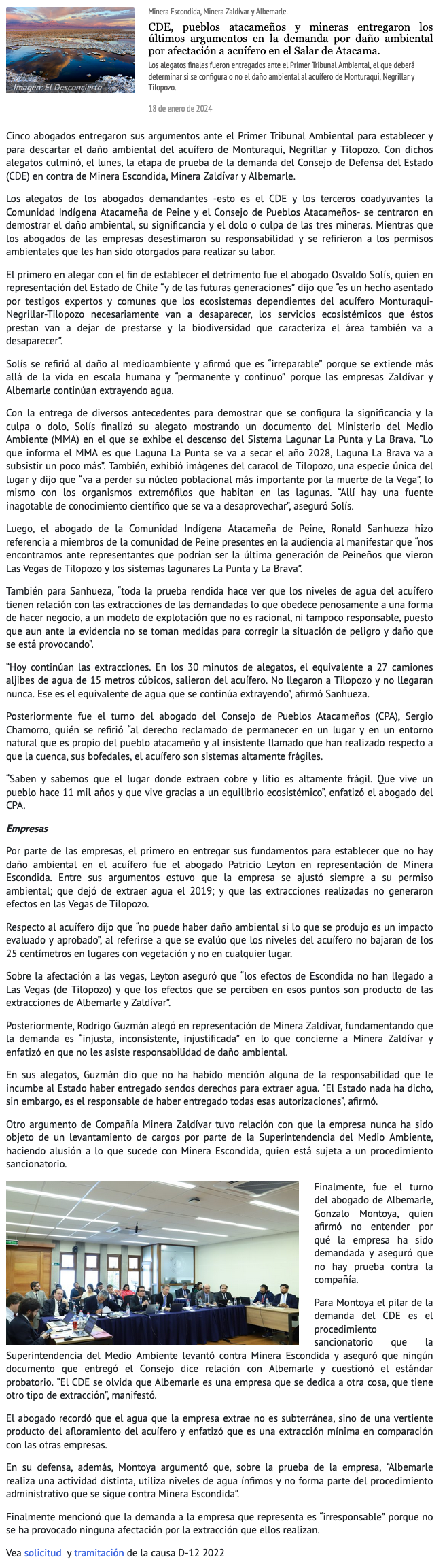 Entregan últimos argumentos en la demanda por daño ambiental por afectación a acuífero en el Salar de Atacama - (termometro.cl)