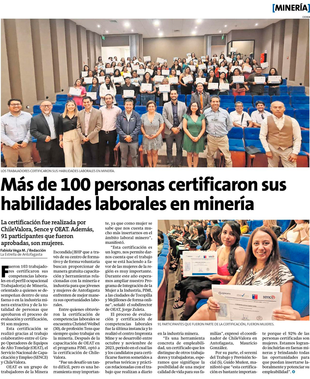 Más de 100 personas certificaron sus habilidades laborales en minería - (Estrella de Antofagasta)