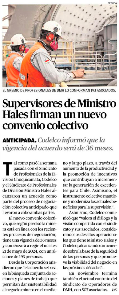 Codelco logra acuerdo en Ministro Hales - (La Segunda)